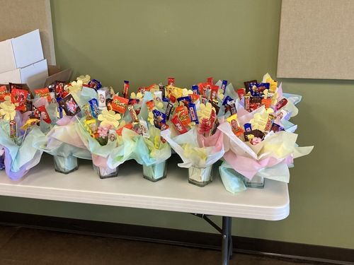 A special thank you to Lori Boyken for the candy bouquet idea and to Lori, Linda Wells, and Carla Vogel for brainstorming and working out the logistics for this project.