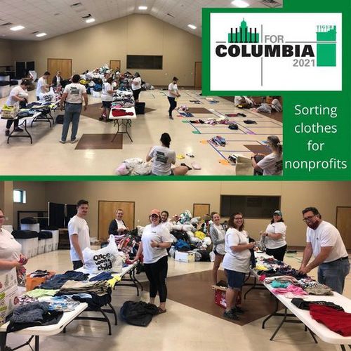 Patty Avery and the Wiese family spent their morning painting trash cans and recycle bins in the District. After they finished painting they enjoyed lunch at the pop-up park on the business loop. Patty wrote, "Joining in the #FORCOLUMBIA projects is always fun; this was my 6th year. I served downtown, cleaning and painting trash cans and recycle bins before business hours on Saturday. My work team enjoyed visiting with passers-by and were thanked by many of them! Lunch with volunteers from other work sites is always fun as well. It’s a good chance to visit with members of other churches and hear of experiences at their work sites. "