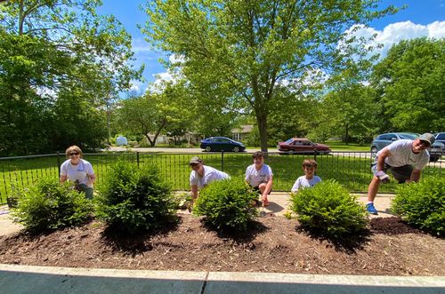 Several AIC families (Hendersons, Schartmons & Whaleys) worked to beautify the landscaping around Woodhaven group homes.
