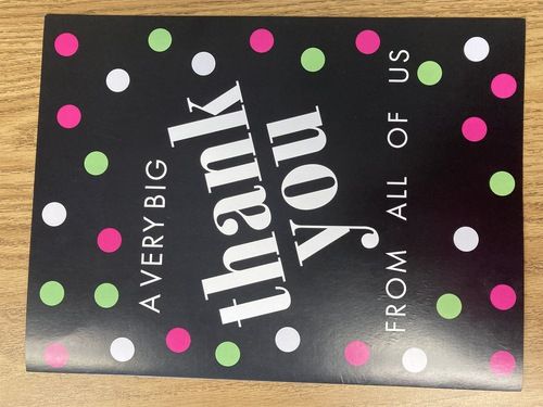 After the event Alive In Christ received a huge thank you card signed by all of the men (see below) along with a picture of the men with the card (picture & card are hanging on the AIC bulletin board).