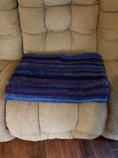 When PT (Pastor Tim) challenged us to tithe our time, I thought about what that might look like for me. For it to be something sustainable, year-round, I knew it would need to be something I could do inside and without much set up or taking up much space. I thought of crocheting baby blankets for Faith Maternity Care. When I called them the next day, they said they were overrun with baby blankets, but didn't have enough stroller throws. They like them smaller than is typical (about 19 inches square), so there is nothing hanging out to get caught on anything. I also contacted the Linus Project. They indicated their biggest need was blankets for teen boys.