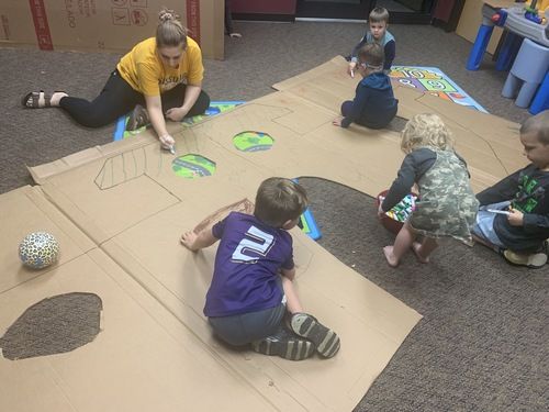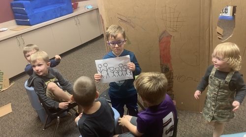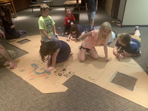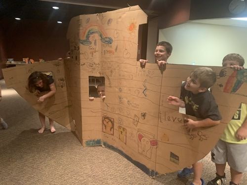 God told Noah to build an ark (or boat), so the children pretended to be Noah and built their own cardboard boats on Wednesday night. We “chopped down trees” and "made them into boards” so that they could do as God told them to. Once the boats were made, Noah led the animals onto the boat, two-by-two.