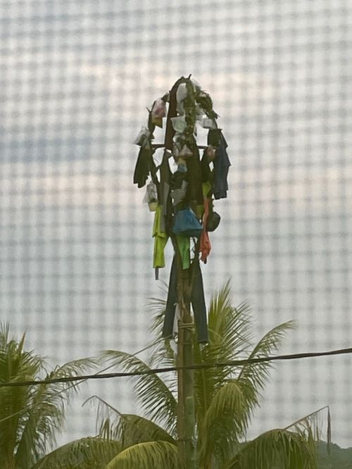 We played with the villagers (kids we played with pictured below). And on our last night we did a mini Peruvian carnival. We had brought things to donate from kitchen measuring cups to rubber boots and flip flops and clothes and candy. We tied it all to the leaves of a banana tree (see picture below) and danced around the tree taking turns chopping it with a hatchet until it fell and all the people rushed in and grabbed the gifts.