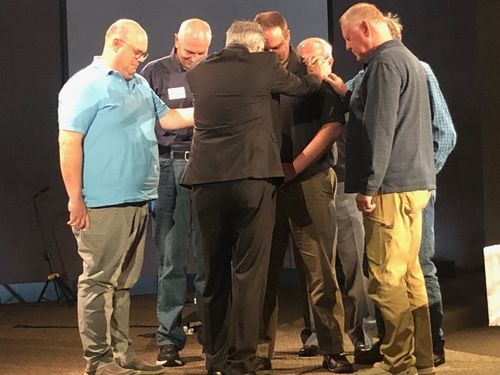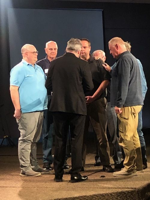 Pictured below are the current elders praying over Nate as he is installed as a new elder.
