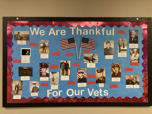 This month we are honoring our veterans with a special bulletin board to recognize their service. Please take a moment in November to check out the board and to thank our veterans. Below are the pictures we have received from our veterans and their families. See if you can tell who they are (you can check your guesses on the bulletin board outside of the office).