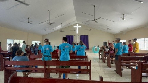 After breakfast the food preparation team went to the store to pick up food to distribute. We picked up flour, sugar, rice, beans, oil, laundry detergent, and canned sausages. We then, created 20 bags of each of those so we could distribute them to 20 people. Whenever we had spare time we would begin to set up for VBS. After everything was packaged we distributed the first few sets of food. While we delivered the food we talked to the families and prayed for them. It was humbling to see how few possessions they owned, but how much faith they still had. Many of the trials they were going through that they told us about were so heartbreaking and brought many of us to tears. On the way back to church we picked up the kids for VBS. Our bus driver would honk the horn and kids would come running on the streets to catch the bus - it was an amazing memory!